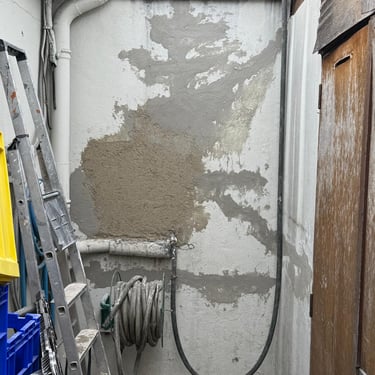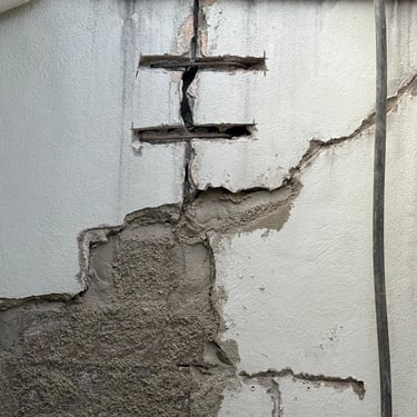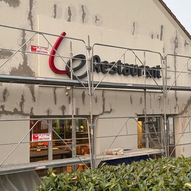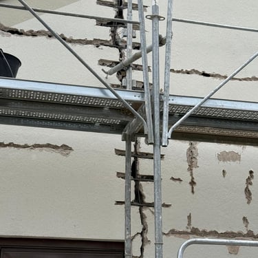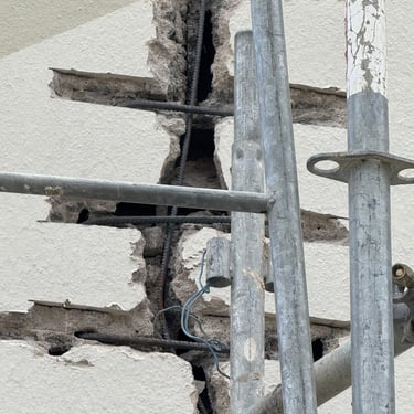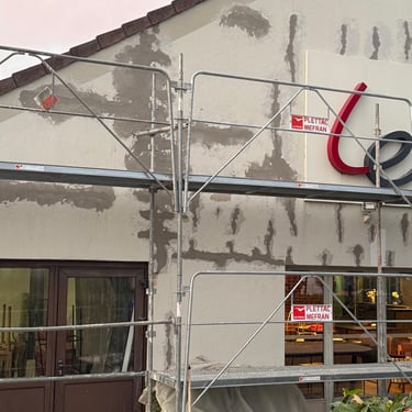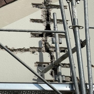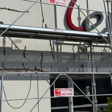 Réfection générale de la façade avec agrafage de fissures, passivation des aciers, réalisation d'un enduit type I4